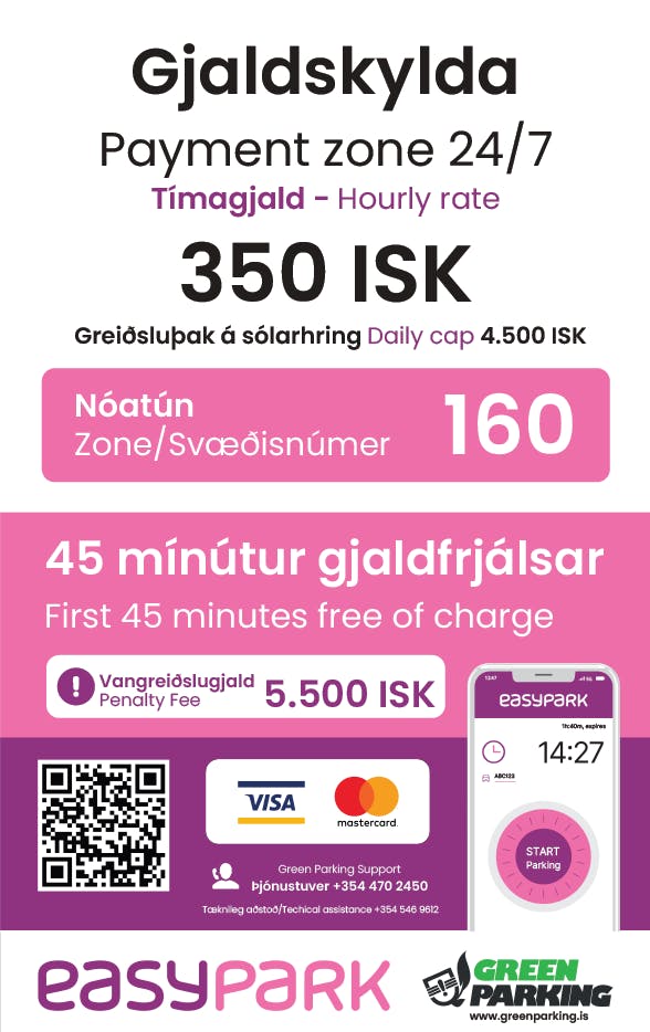 - Bílastæði: 350 kr. pr. klst.